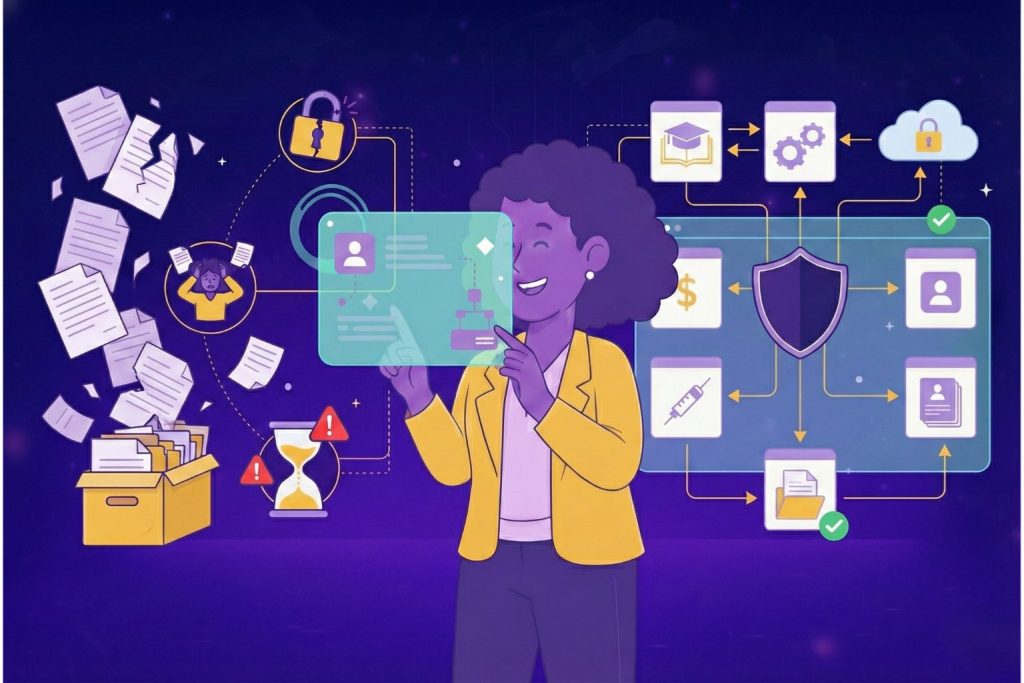 Gestión compleja y riesgosa de grandes volúmenes de documentación regulada.